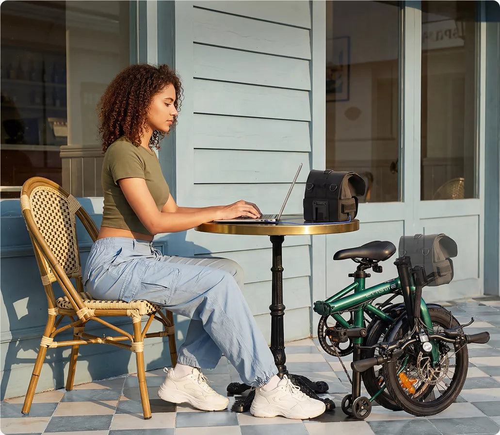 When power stays with you, you could charge anywhere, power other equipment anytime, and ride further with no anxiety. The rest of your day stays uninterrupted.